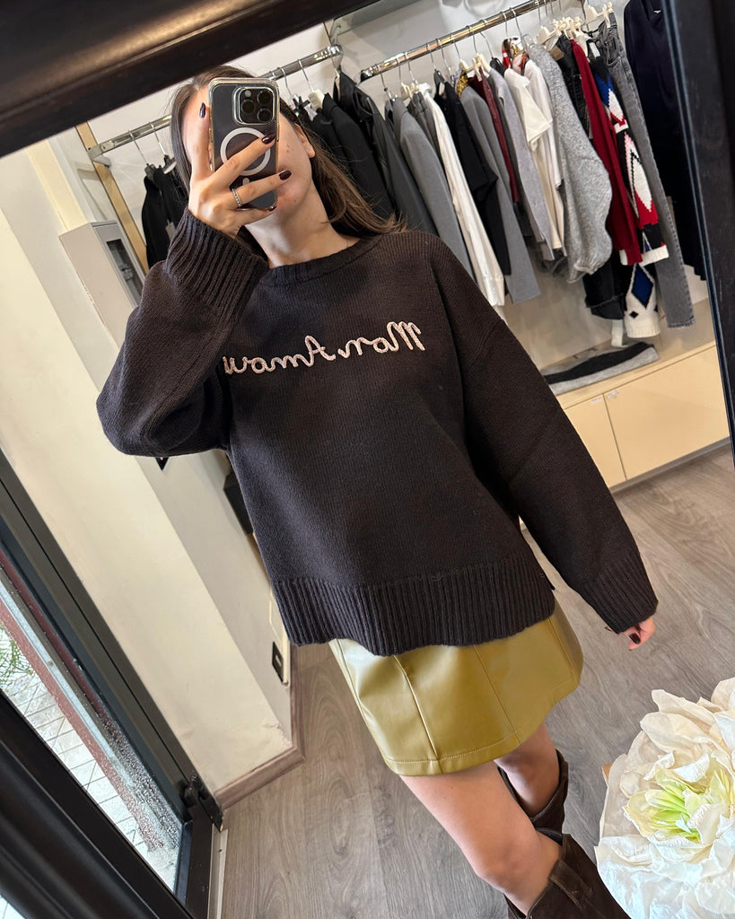 Girocollo con ricamo color moro: "Mon Amour"