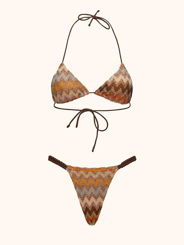 Bikini in crochet con imbottitura interna estraibile e treccina in lycra su slip