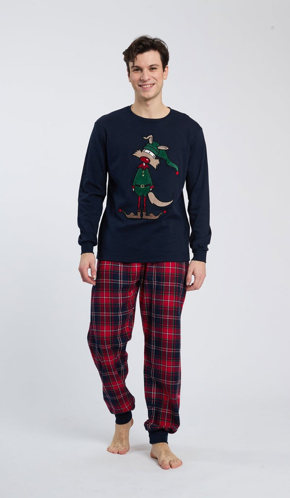 Girocollo elasticizzato blu con lupetto elfo e pantalone scozzese non elasticizzato